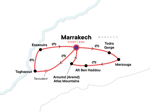 Hit the road one final time and return to Marrakech. Even though your trip ends on arrival, make sure you take the time to take plenty of photos with newfound friends to commemorate the memories made. (Morocco scrapbook, anyone?)