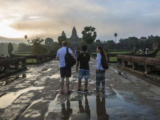 Watch the sun rise over the massive Angkor temple complex with a guided tour. Opt to visit the Tonlé Sap floating village and the Angkor National Museum. Enjoy a traditional meal of Khmer food at a G Adventures for Good-supported project.