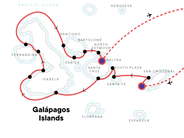 Please note that all flights to and from the Galapagos make a 1 hour refuelling stop in Guayaquil.