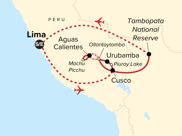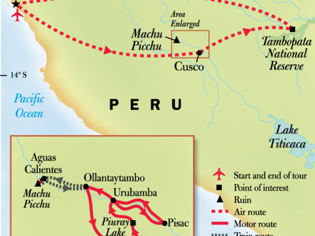 Venture into mysterious Machu Picchu, exploring Inca ruins and hiking the surrounding slopes in search of stunning views, Visit a women’s weaving cooperative and a community-run restaurant to experience Andean culture, Discover the biodiversity of the Peruvian Amazon, exploring rainforest trails, oxbow lakes, and treetop canopies, Learn about the constellations of the Southern Hemisphere while peering through telescopes at the Cusco Planetarium.