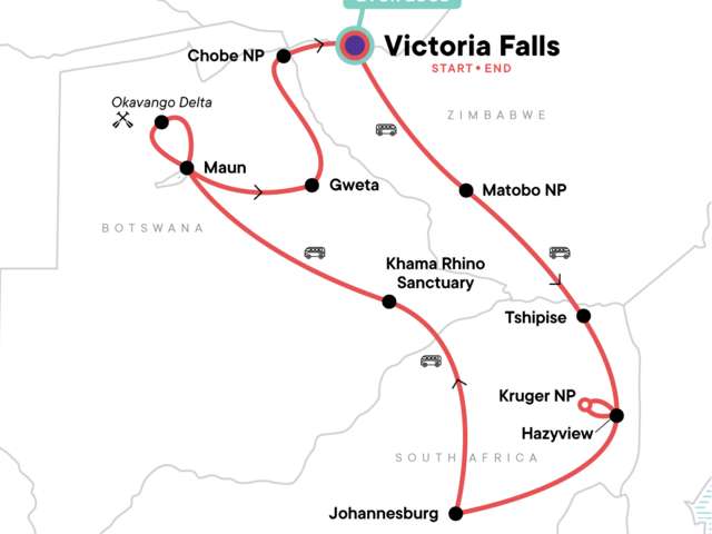 Now's the time to explore Africa on your terms with this tour that's affordable for young travellers. Wildlife, wilderness, and wow-worthy camp outs make up this 15-day exploration of South Africa, Botswana, and Zimbabwe. Hop aboard one of our Landos (overland adventure vehicle) and go searching for the "big five" in Kruger National Park, check out Victoria Falls, and look for rhinos on-foot in Matobo National Park. Don’t let anything extra get between you and the expansive scenery – camp out, sing songs around the fire with locals, and travel by mokoro canoe. When you're down here, the more time spent outside, the better.