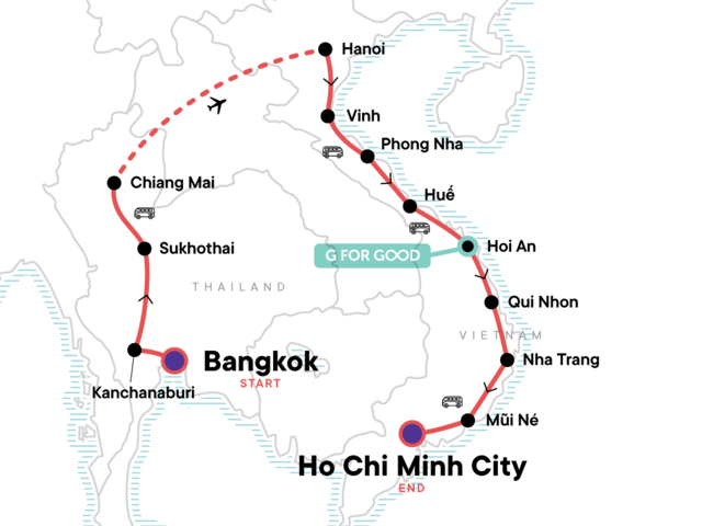 Do it all, and then some, on this 21-day tour of Thailand and Vietnam. Kicking off in Bangkok, enjoy the big city before heading to Sukhothai for a temple bike, then Chiang Mai for street food crawls, night markets, and a whole lot more. In Vietnam, take in the highlights of Hanoi and Ho Chi Minh, then soak up Nha Trang's beautiful beaches and all the natural awesomeness the area has to offer.